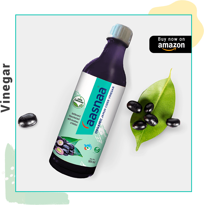 Aasnaa Jamun Cider Vinegar is unfiltered and unpasteurized, with the goodnes of Mother. Our Jamun Cider Vinegar is manufactured from natural Himalayan Jamun Juice, fermented and processed by a scientifically optimised process to retain all the natural goodness for overall body wellness.